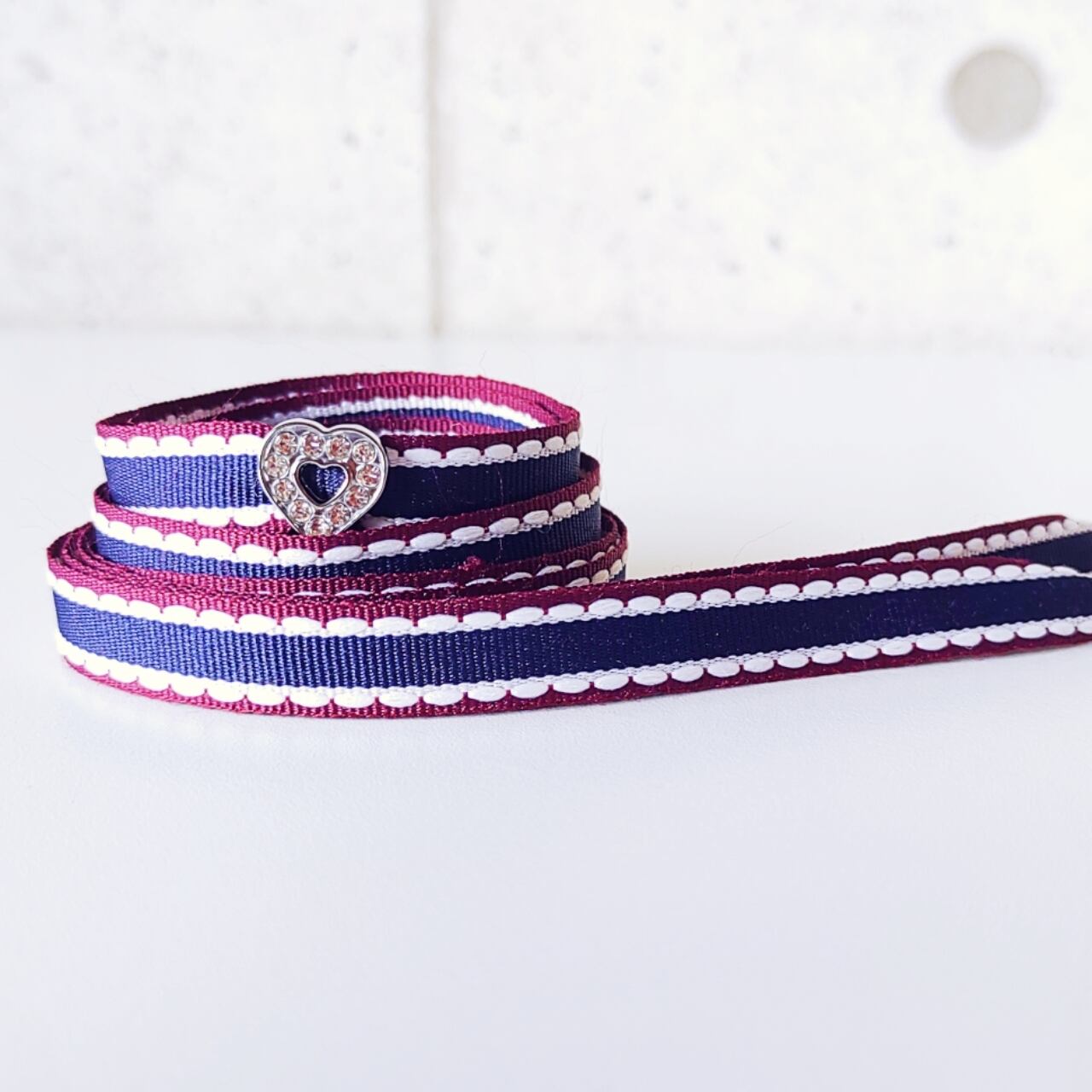 ●紺にえんじ色の縁取り、あいだに入った2本の白のステッチがフリルのようにも見えるきれいなリボンをシューレースにしました♥