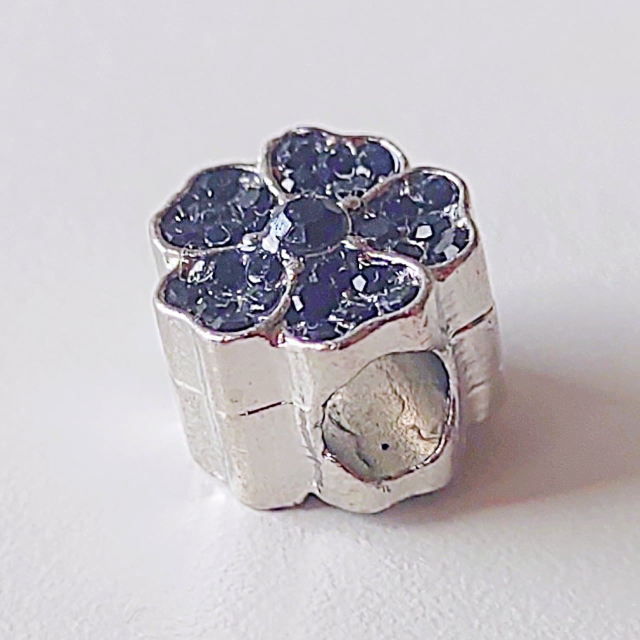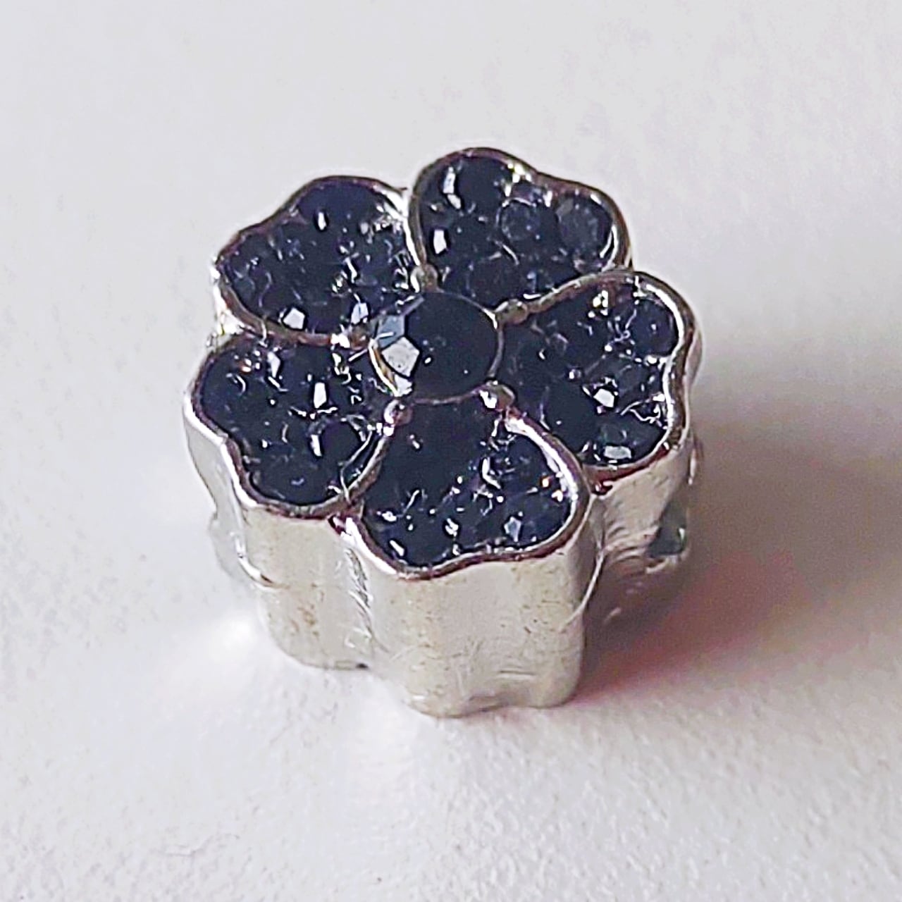 ●黒のラインストーンをはめこんだ花のモチーフのシューレースチャームです。
