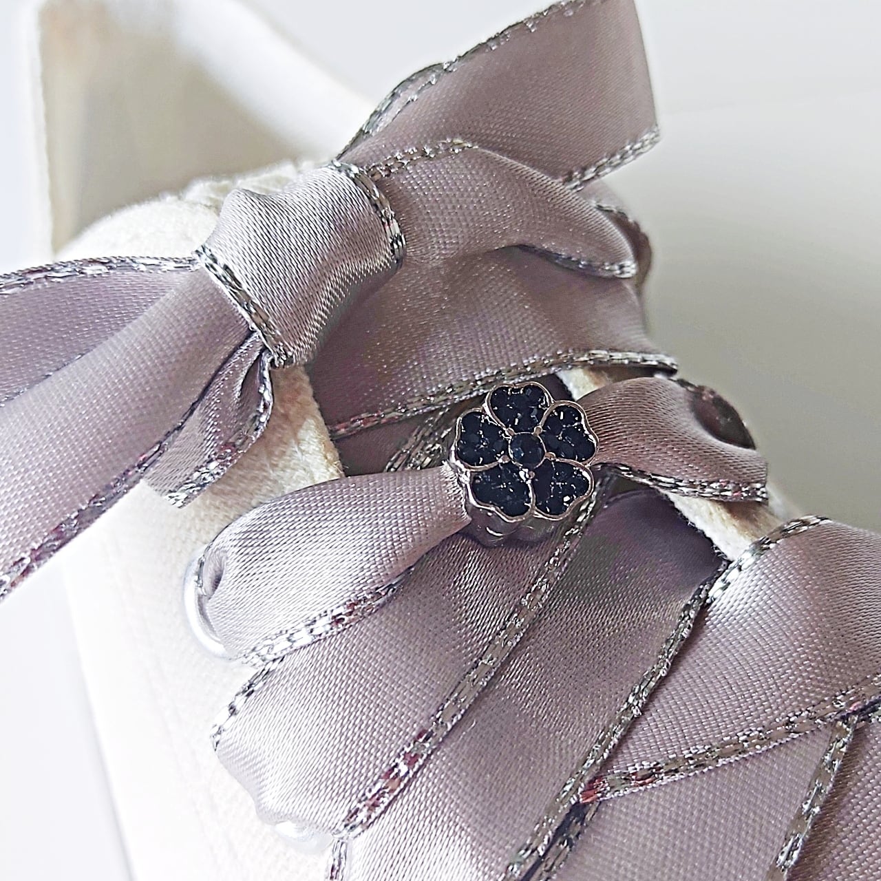 ●クールでエレガント、ゴージャスな印象もつくれる特別感のあるチャーム。カジュアルなスニーカーにフェミニンさをプラスできます。